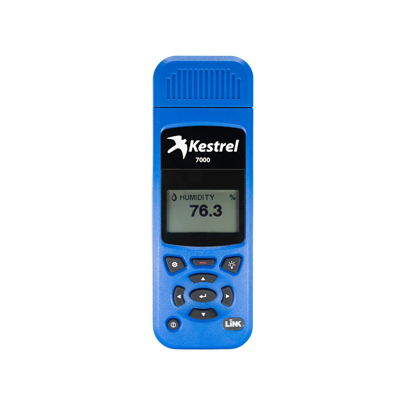 The Kestrel 7000 Environmental Meter provides precise temperature and humidity monitoring with a field-replaceable sensor for easy maintenance. Its rugged design and Bluetooth connectivity ensure reliable performance in harsh conditions.