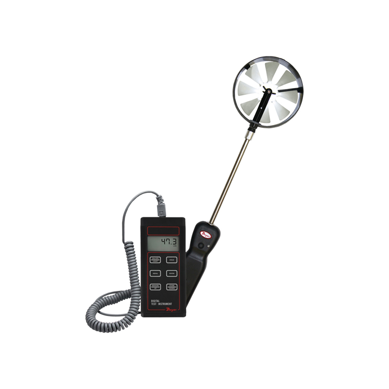 The DwyerOmega 473B-1 Vane Thermo-Anemometer is a 100mm handheld device, compatible with AP1, RP1, and VP1 probes. Backlit LCD, stores 99 readings, ideal for air balancing, HVAC, and industrial verification.